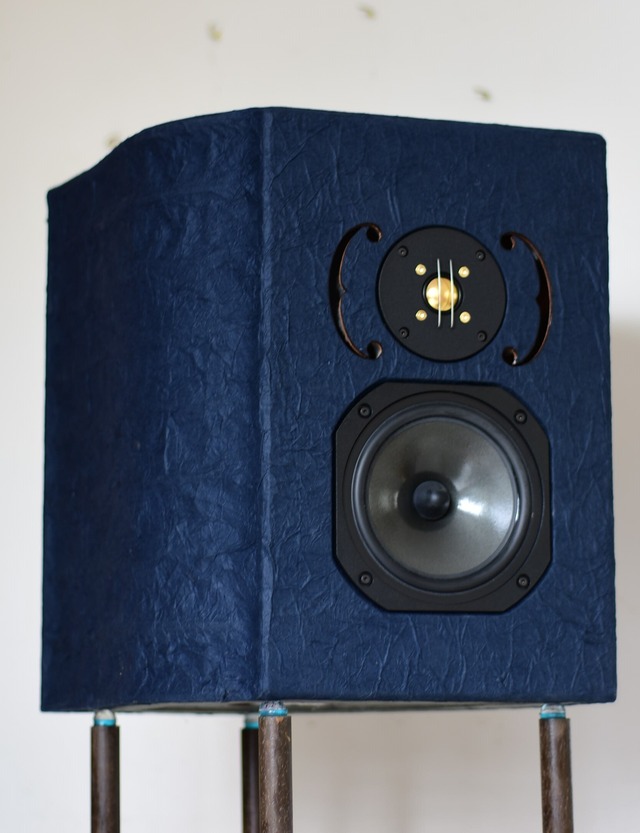 室内楽をチャーミングにウキウキ再現するスピーカーです。 和紙は、『小原和紙 藍色』の和紙を特別に使用しました。 セット内容 スピーカー左右ペア サイズ 高さ43㎝x幅32㎝x奥行32㎝ 重さ 5㎏